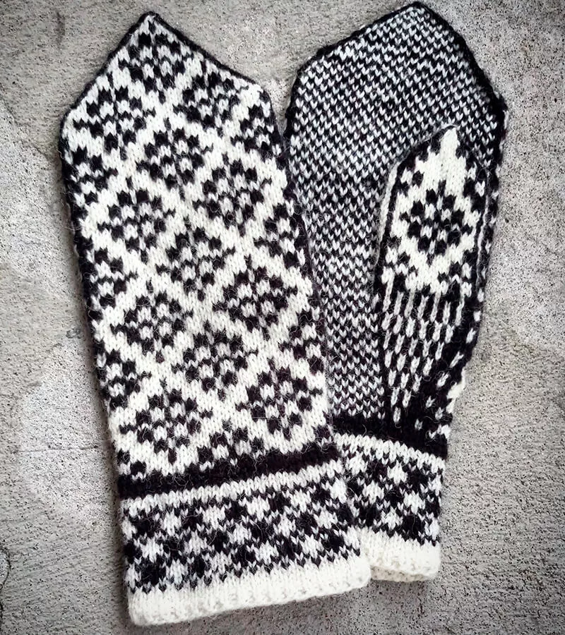 Vettlingarnir á myndinni heita Sparivettlingar og eru eftir Guðlaugu, uppskrift hér.