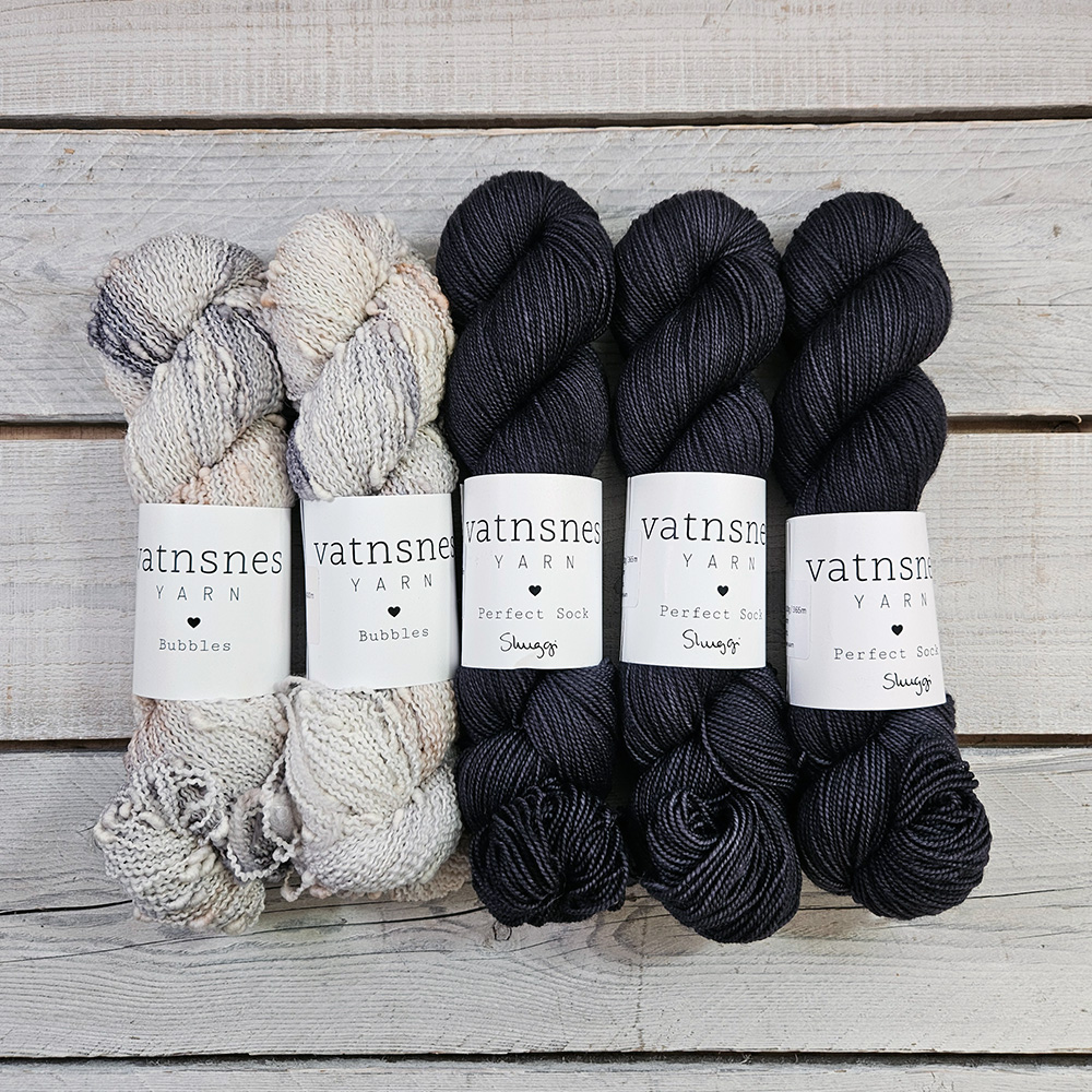 Í þessum pakka má finna uppskrift að Kusk og þrjár hespur af Perfect Sock og tvær Bubbles. Þennan pakka er hægt að nota í allar stærðir til og með XL. Sjá stærðir hér neðar.