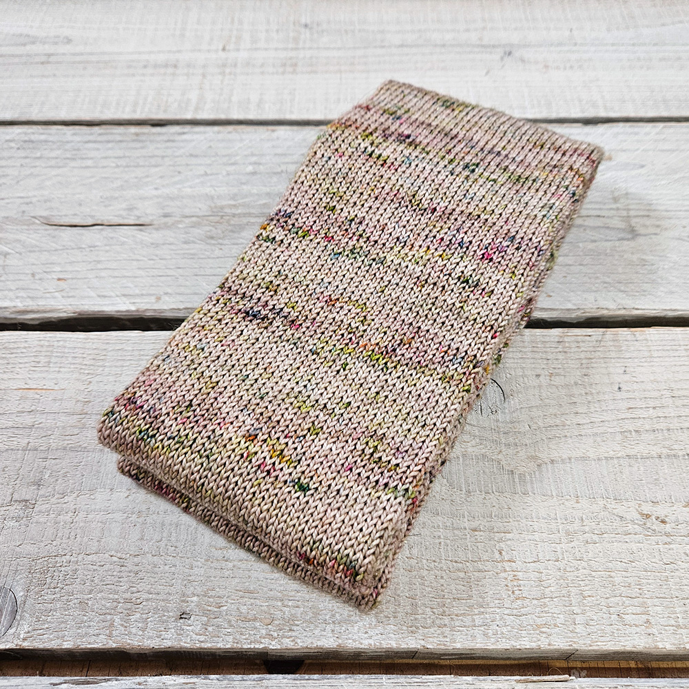 Þetta er sokkasnákur sem hægt er að búa til sokka úr, sem dæmi, með því að prjóna við hann stroff, hæl og tá. Snákurinn er prjónaður úr handlituðu garni á handknúna sokkaprjónavél hér hjá Vatnsnes Yarn. Leiðbeiningar með hvernig má setja hæl í svona sokkasnák má finna hér.