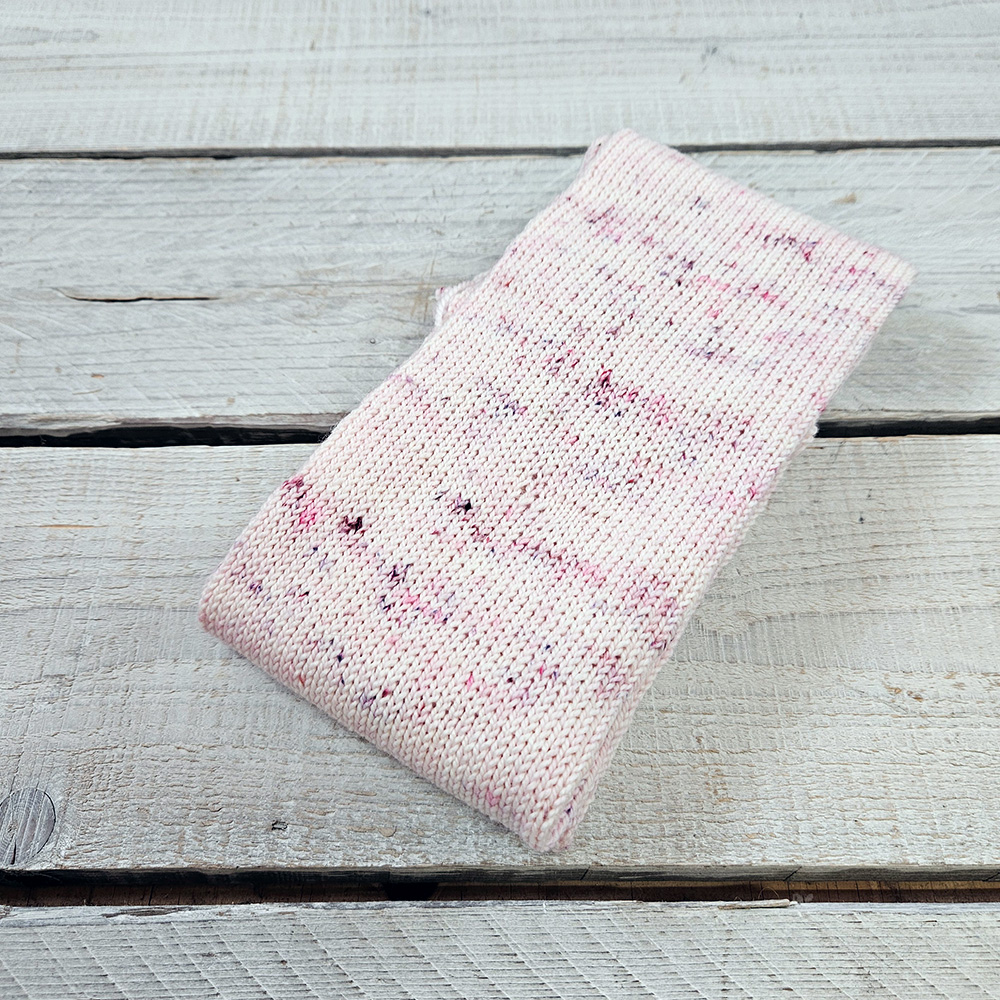 Þetta er sokkasnákur sem hægt er að búa til sokka úr, sem dæmi, með því að prjóna við hann stroff, hæl og tá. Snákurinn er prjónaður úr handlituðu garni á handknúna sokkaprjónavél hér hjá Vatnsnes Yarn. Leiðbeiningar með hvernig má setja hæl í svona sokkasnák má finna hér.