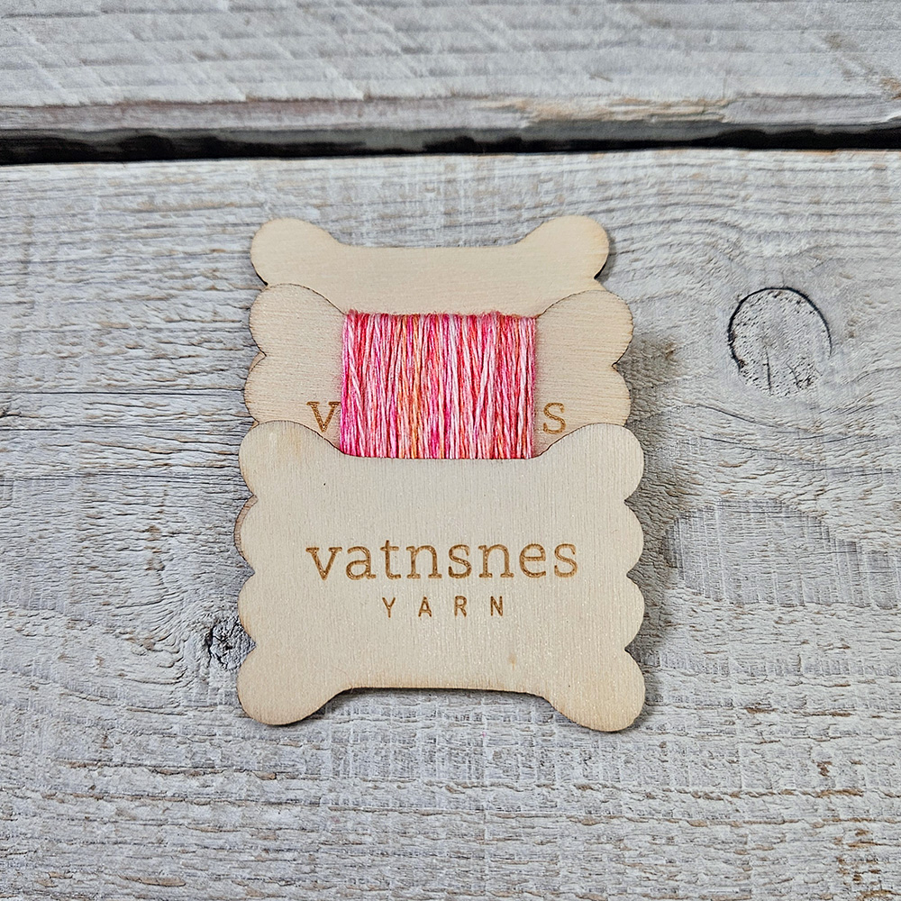 Hér eru komin þráðakefli fyrir útsaumsgarnið. Á þráðakeflin passar, sem dæmi, ein 3g handlituð útsaumsgarnshespa. Þau eru laser skorin úr við og merkt Vatnsnes Yarn.