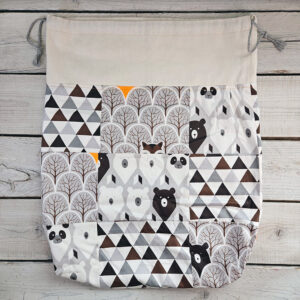 Þessi fallegi verkefnapoki er 38cm á breidd og 43cm á lengd með löngum höldum.