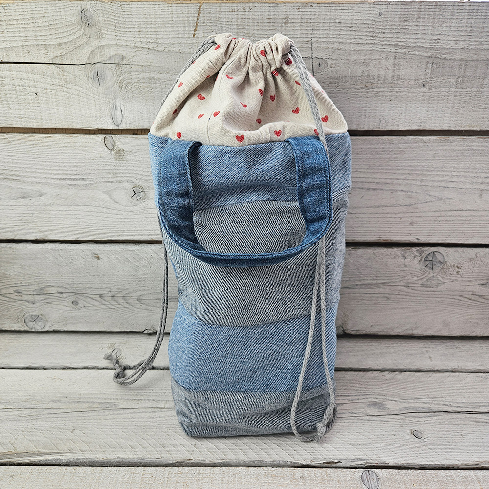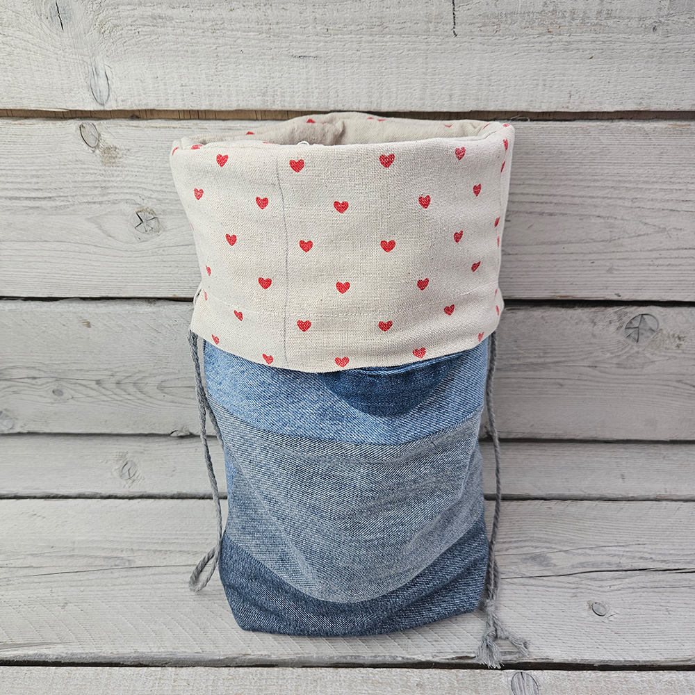 Hér hafa buxur, efnisafgangar, tvinnar síðan í gamla daga og hinir og þessir bútar sem annars hefðu þjónað hlutverki landfyllingar eða annarskonar rusls fengið tilgang. Tilgangurinn er göfugur að sjálfsögðu enda er það sem þú ert að búa til eitt það mikilvægasta! Og hér er þá kominn verkefnapoki sem eitt sinn var sjálfur verkefni í öðrum verkefnapoka, reiðubúinn til starfa fyrir þig!